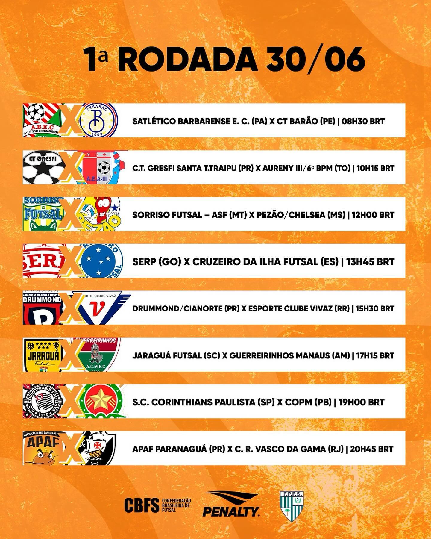 Futsal Base: Vasco estreia na Taça Brasil Sub-17 contra a APAF neste domingo às 20h45; veja tabela
