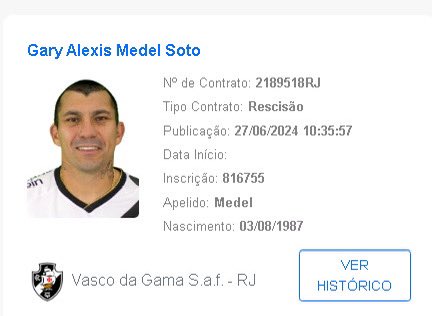 Foi publicada hoje no BID da CBF a rescisão de contrato do volante Medel junto ao Vasco da Gama. Com isso o jogador está liberado para atuar pelo Boca.