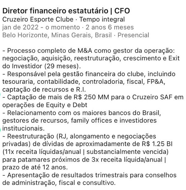 O currículo e ações de Raphael Vianna como CFO do Cruzeiro.