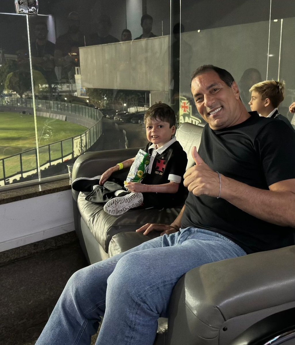 Pequeno torcedor Gui assiste ao jogo ao lado de Edmundo em São Januário