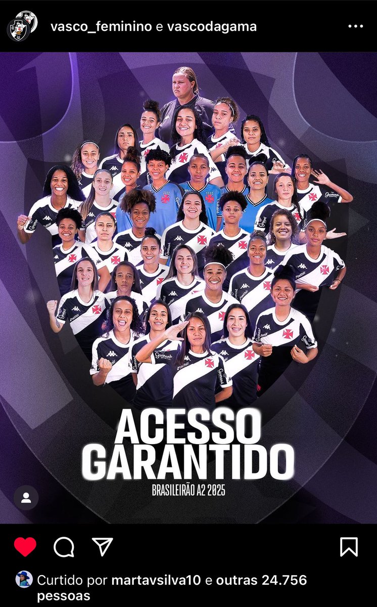 👀💢❤️ E a rainha Marta, grande vascaína, curtindo o post do acesso do time feminino do Vasco. 👑