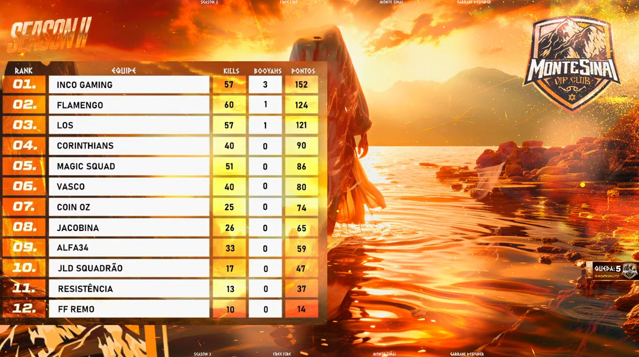 Vasco fica em sexto lugar na disputa do Monte Sinai de Free Fire.