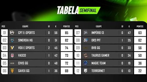 01/07/24 - E-Sports: Vasco está na 6ª colocação na Liga Monte Sinai de Free Fire