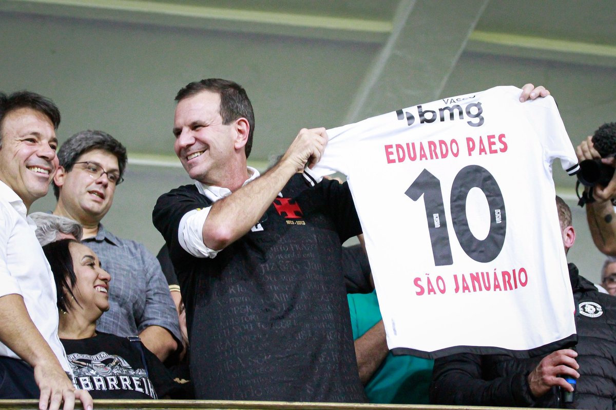 Ao lado do Presidente Pedrinho, na Tribuna de Honra de São Januário, o Prefeito da cidade do Rio de Janeiro, Eduardo Paes, sancionou a lei do potencial construtivo do estádio. ✍️💢
