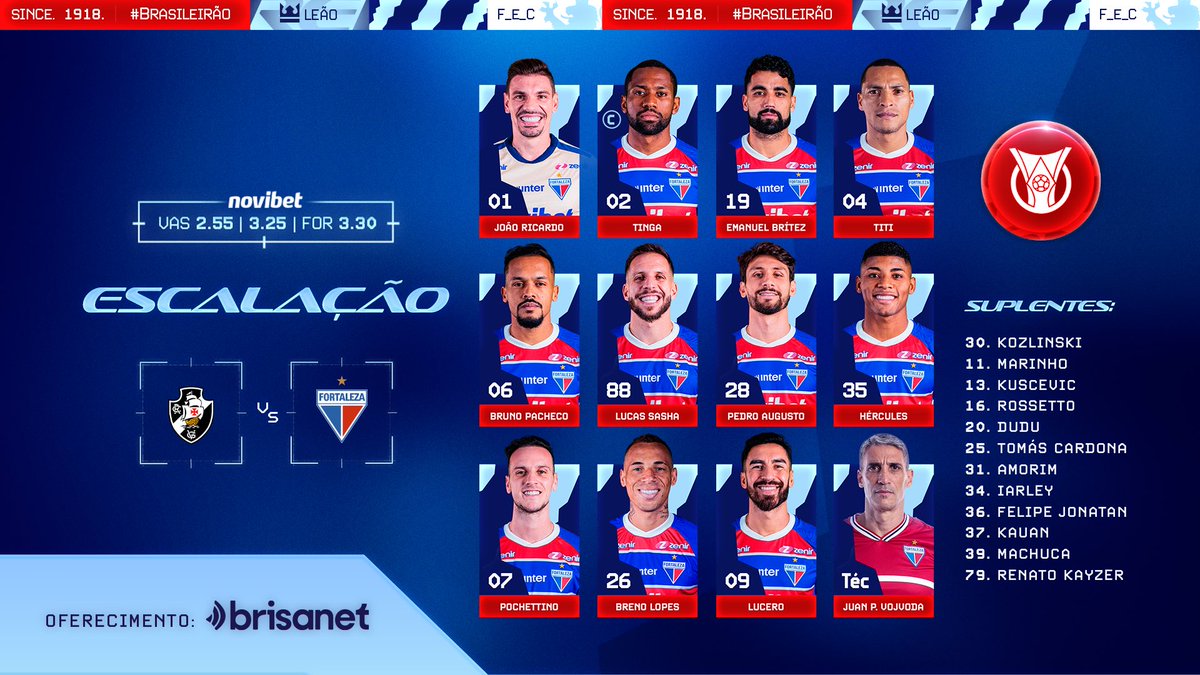 Veja a escalação do Fortaleza para o jogo contra o Vasco; ex-vascaíno Titi é titular