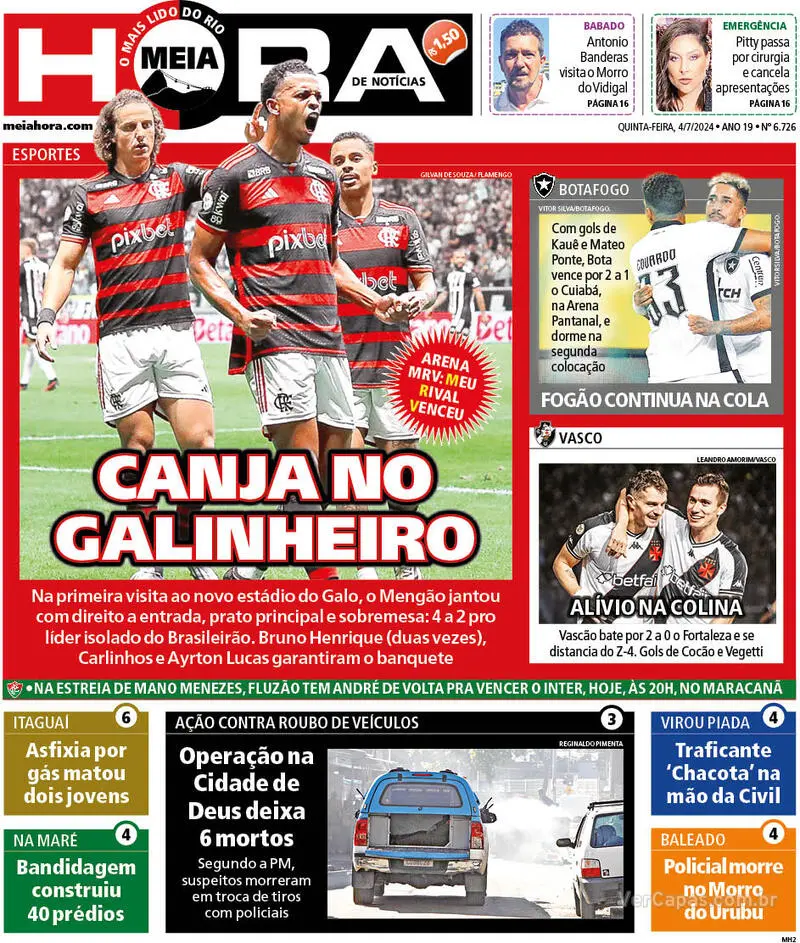Veja as capas dos jornais após Vasco 2 x 0 Fortaleza