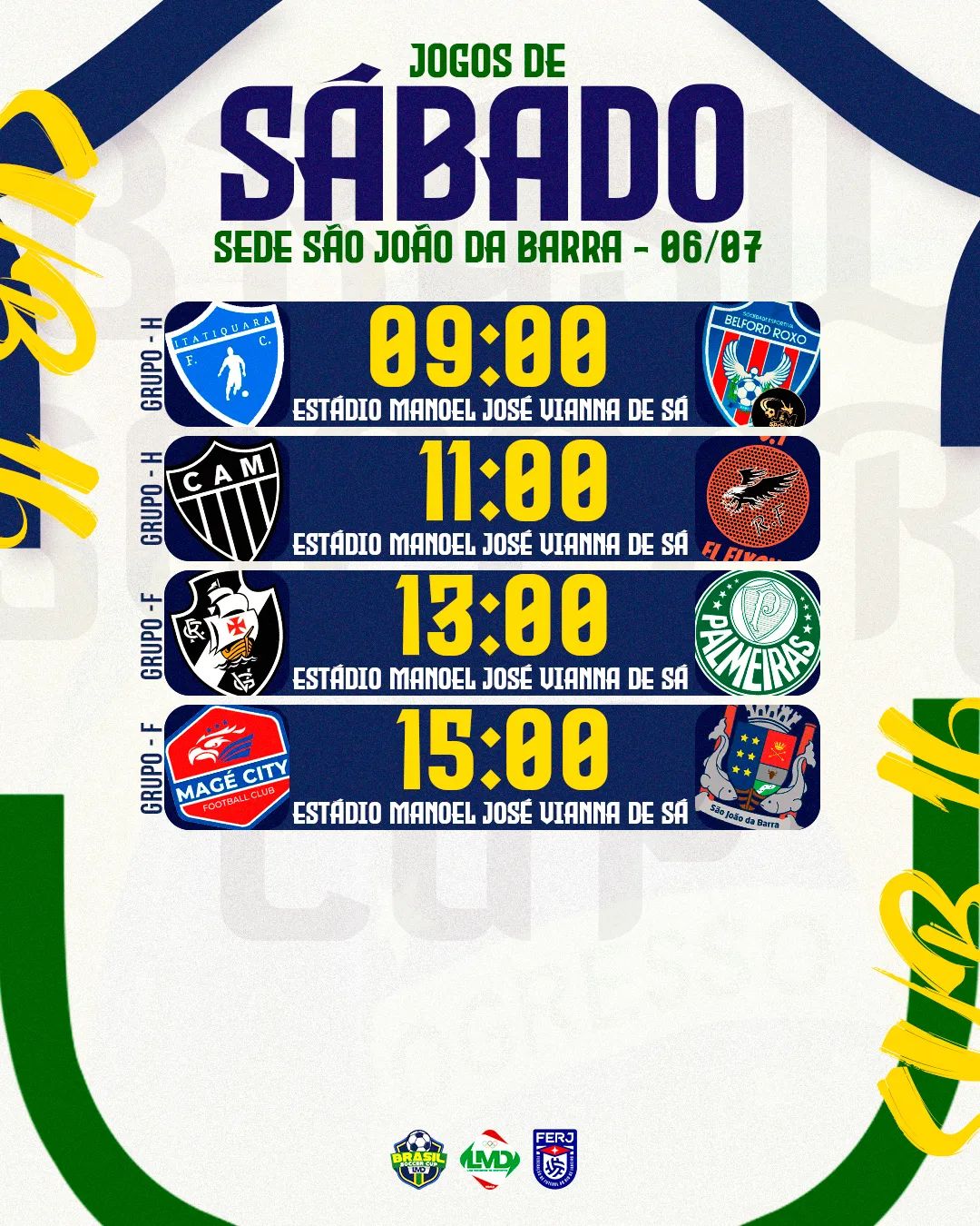 Horários dos jogos deste sábado(06) na sede de São João da Barra. Fiquem atentos aos horários e venham ao estádio prestigiar esse grande evento de nível nacional.
