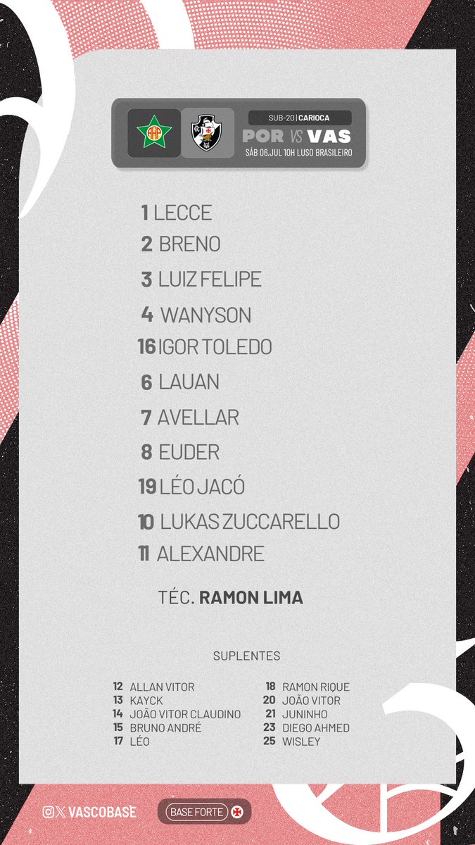 Sub-20 escalado para enfrentar a Portuguesa no Carioca Sub-20. Acompanhe pelas redes @vascobase