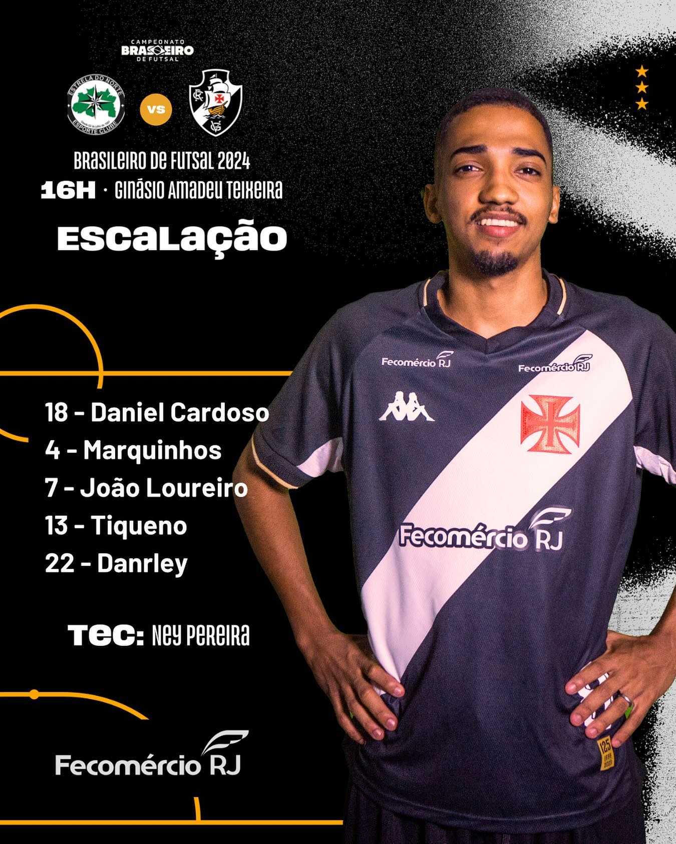 Daqui a pouco, às 16h de Manaus e 17h de Brasília, Estrela do Norte e Vasco se enfrentam pelo Brasileiro de futsal.