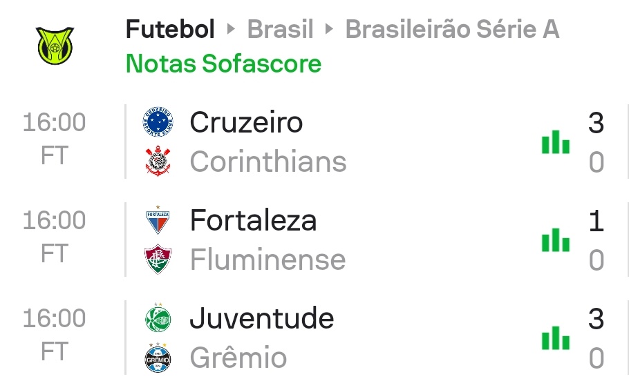 Fluminense, Grêmio e Corinthians, no Z4, perderam na tarde deste domingo; confira os resultados