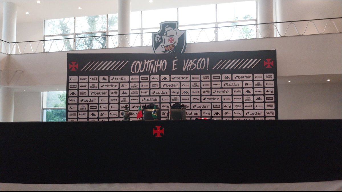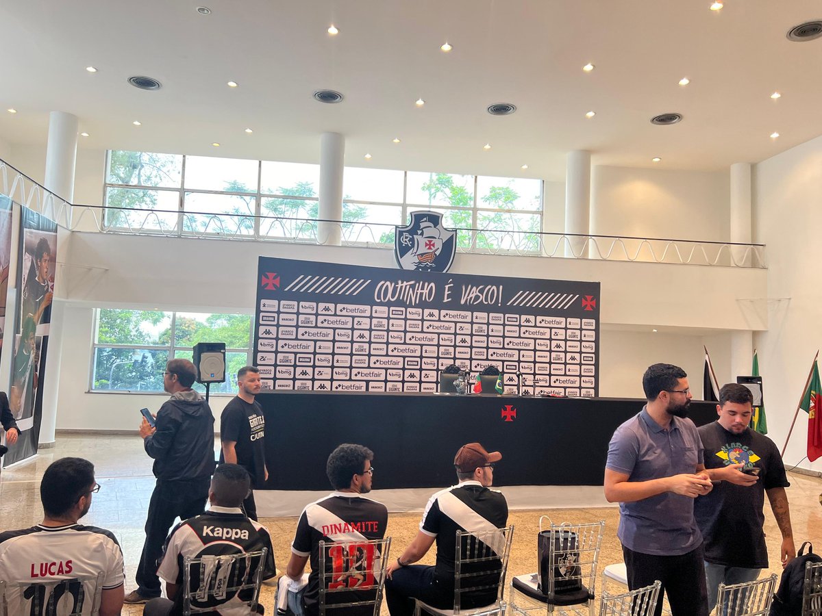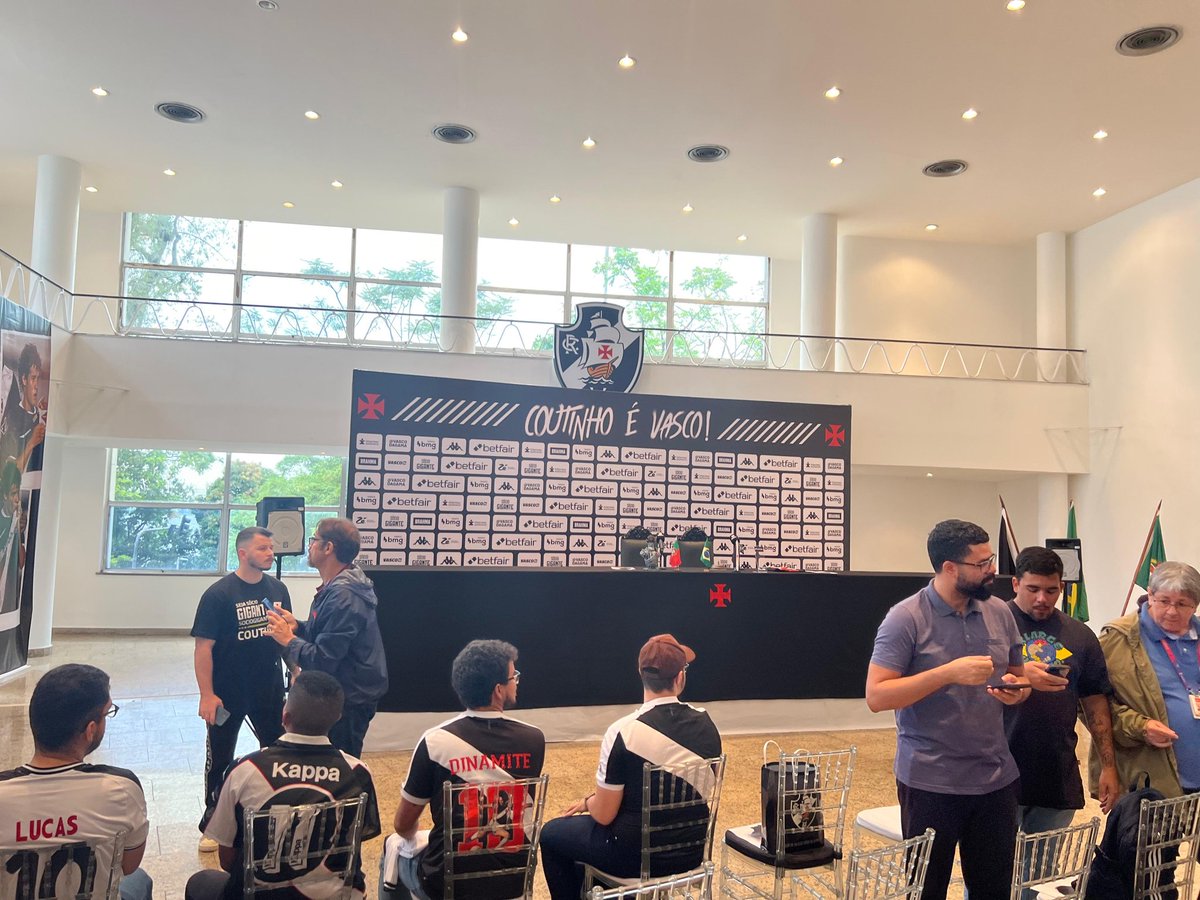 Analisa Vasco presente para a coletiva de imprensa de apresentação de Philippe Coutinho.