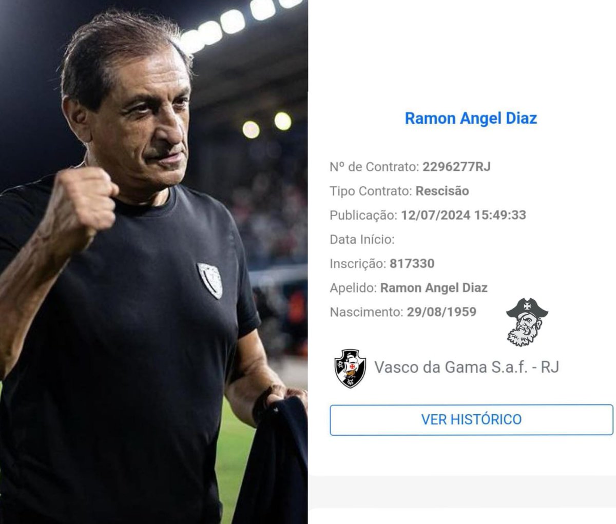 08/07/24 - Ramón Díaz e Emiliano Díaz ainda aparecem no BID como técnicos do Vasco