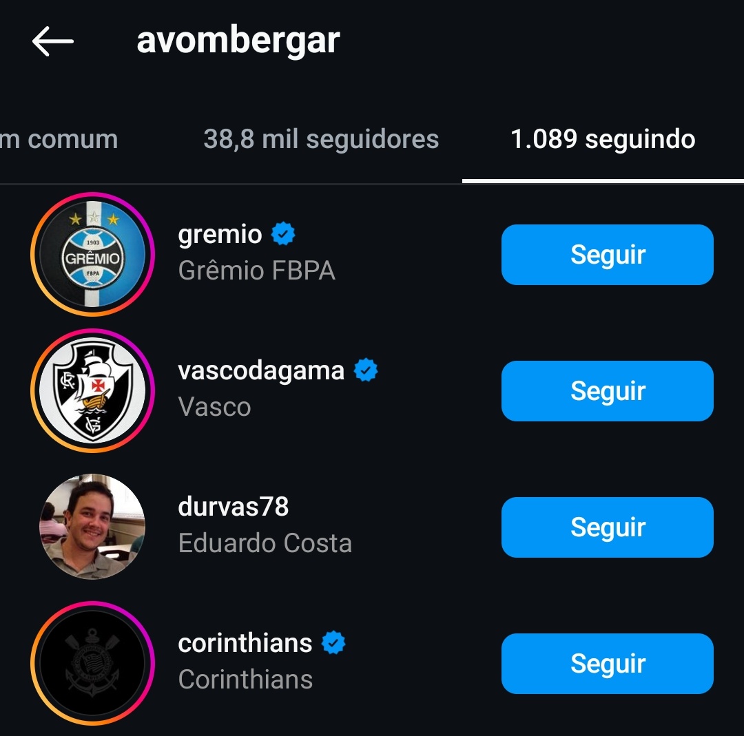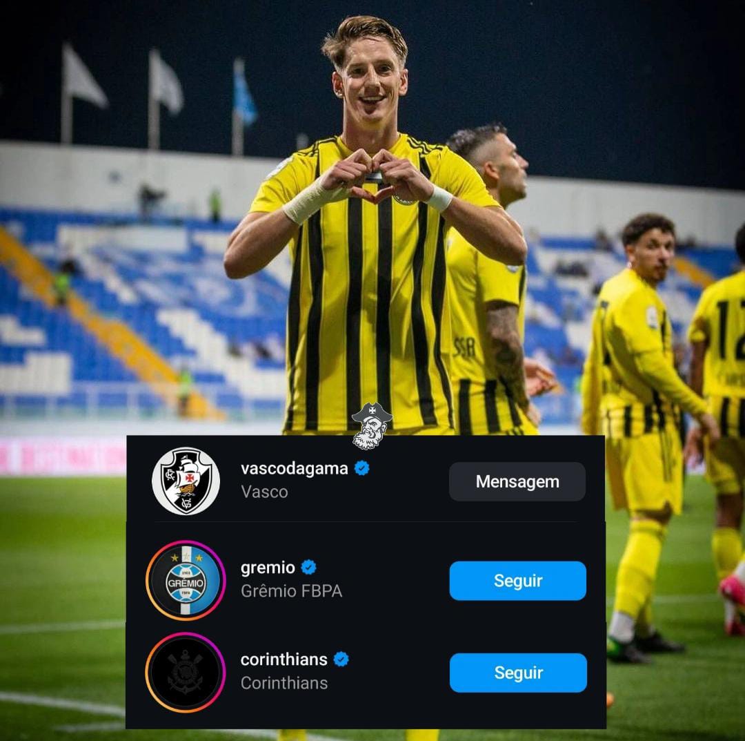 Andrés Vombergar começa a seguir Vasco, Grêmio e Corinthians em suas redes sociais