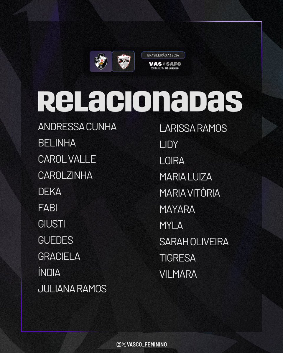 𝓡𝓮𝓵𝓪𝓬𝓲𝓸𝓷𝓪𝓭𝓪𝓼 para a partida de hoje contra o Ação. Vamos, Vasco! 📄💢 #MeninasDaColina #VascoDaGama