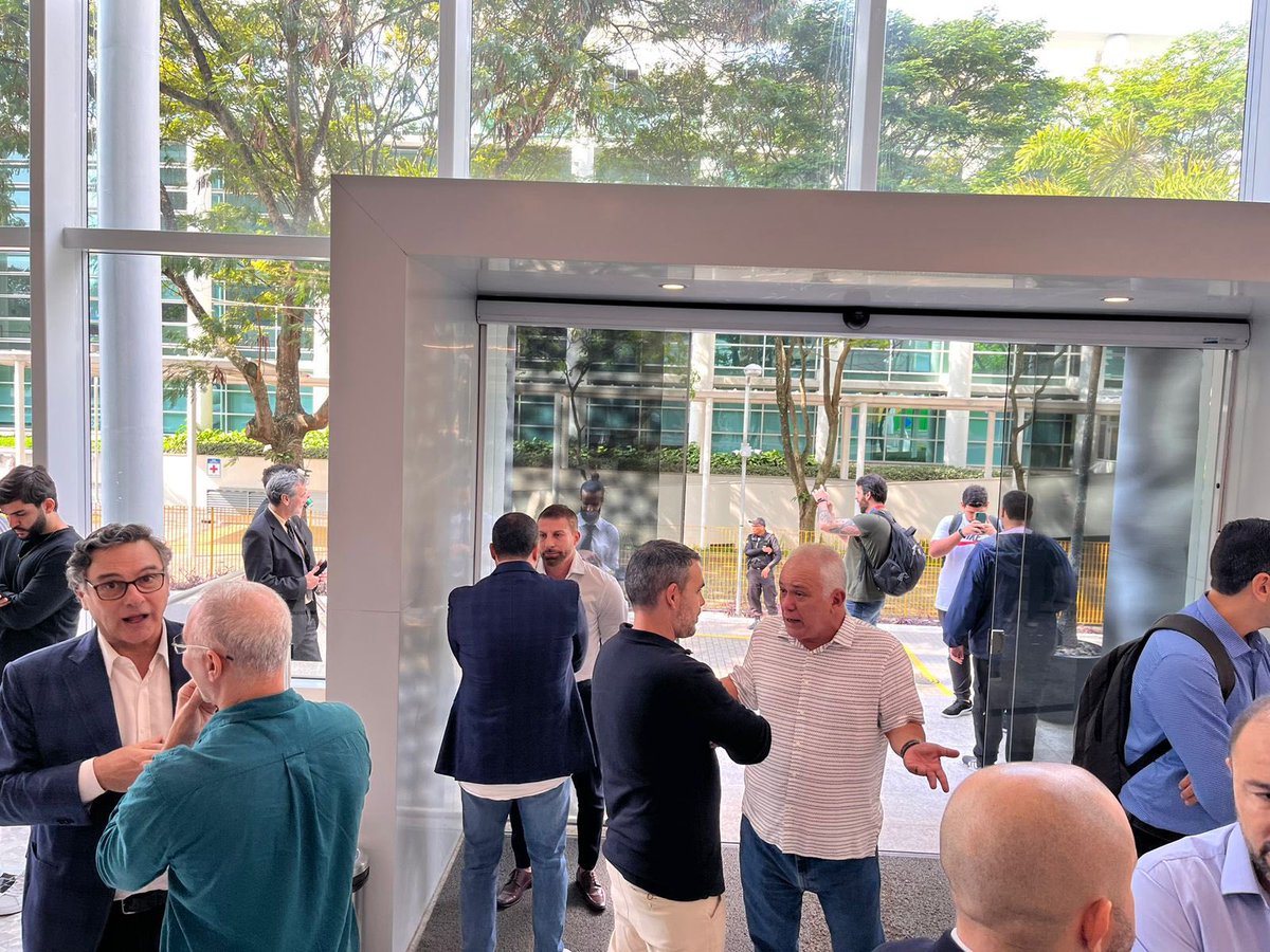 Marcio Bittencourt e Pedrinho conversando antes do sorteio das oitavas de finais da copa do Brasil, na sede da CBF.