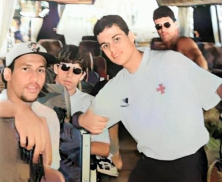 O ex-zagueiro Tinho, o ex-meia Richardson, Juninho Pernambucano e o Carlos Germano no estilo Vegetti, rumo a Excursão da Europa em 1995. O Vasco da Gama viria a conquistar o Torneio Palma de Mallorca na Espanha!