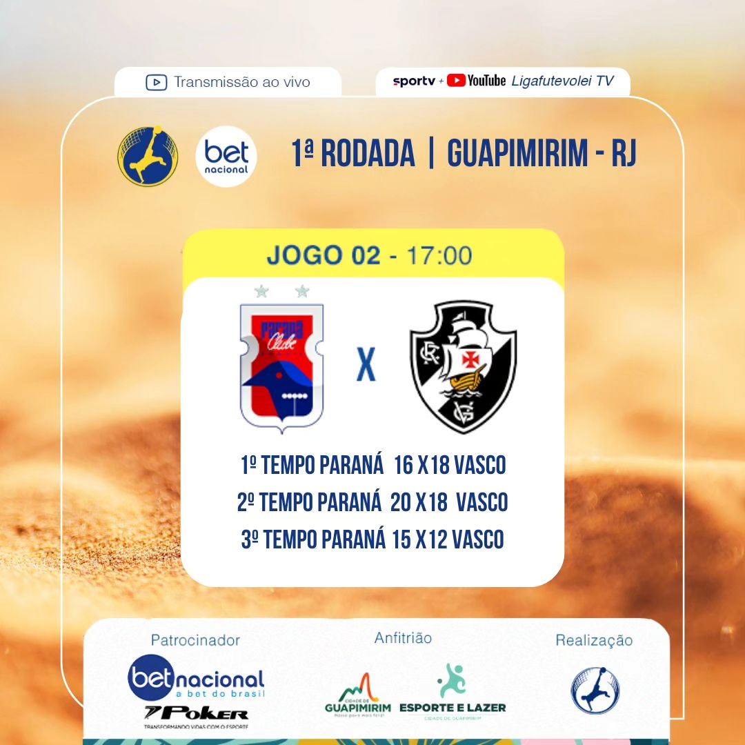 Vasco perdeu para o Paraná pela Liga Nacional de Futevôlei nesta sexta (19): 2 sets a 1.
