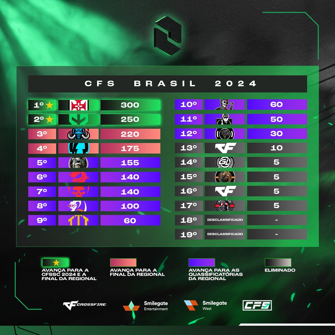 Agora que a #CFBL e #CFOL tiveram suas finais concluídas, está na hora de entendermos como ficou a classificação geral dos times no Sistema de Pontos da CFS 2024!