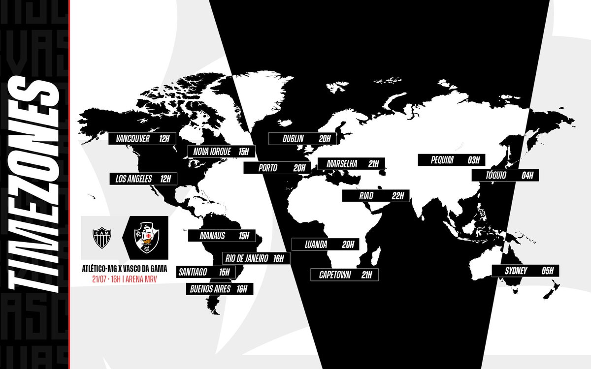 Vasco informa horário do jogo contra o Atlético-MG em várias partes do mundo