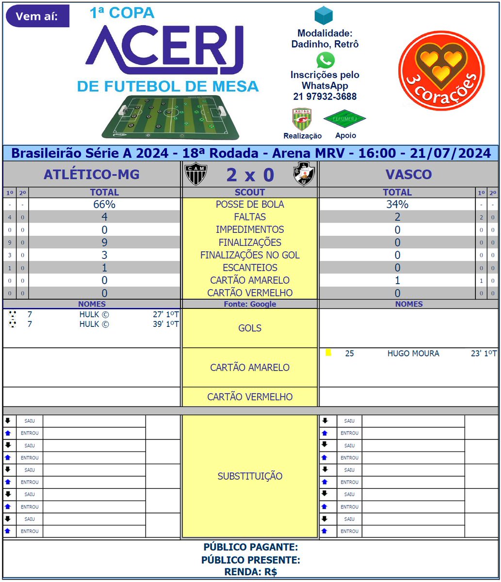 Scout do 1º Tempo de Atlético-MG e Vasco pela 18ª Rodada do Campeonato Brasileiro 2024 na Arena MRV (Fonte: Google) #Acerjinforma #brasileirao2024 #CAMxVAS #AtleticoMG #Vasco @Brasileirao @Atletico @VascodaGama