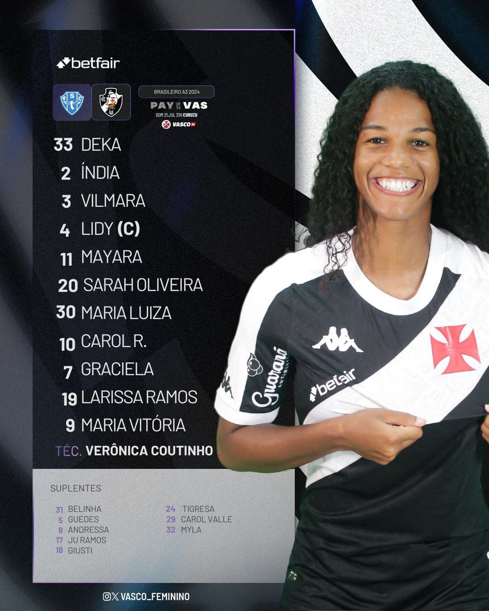 A bola rola às 21h para Vasco e Paysandu, em Belém. VAMOS! ✅💢 #MeninasDaColina