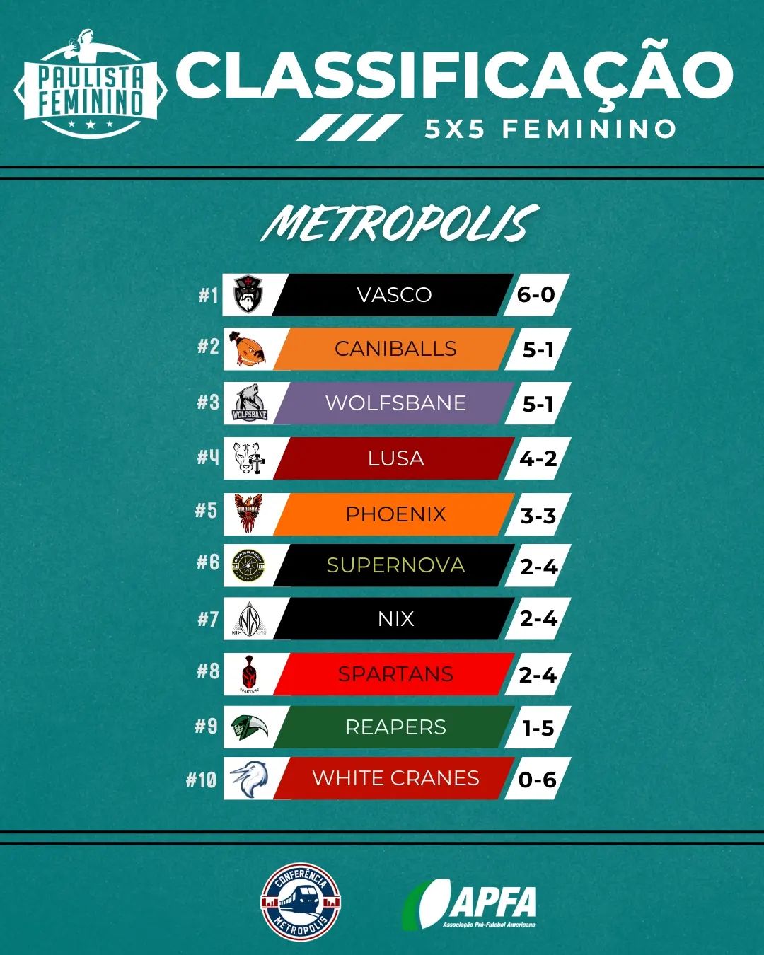 Depois da nossa sexta rodada, confira a classificação do Paulista de Flag Feminino - Conferência Metropolis.