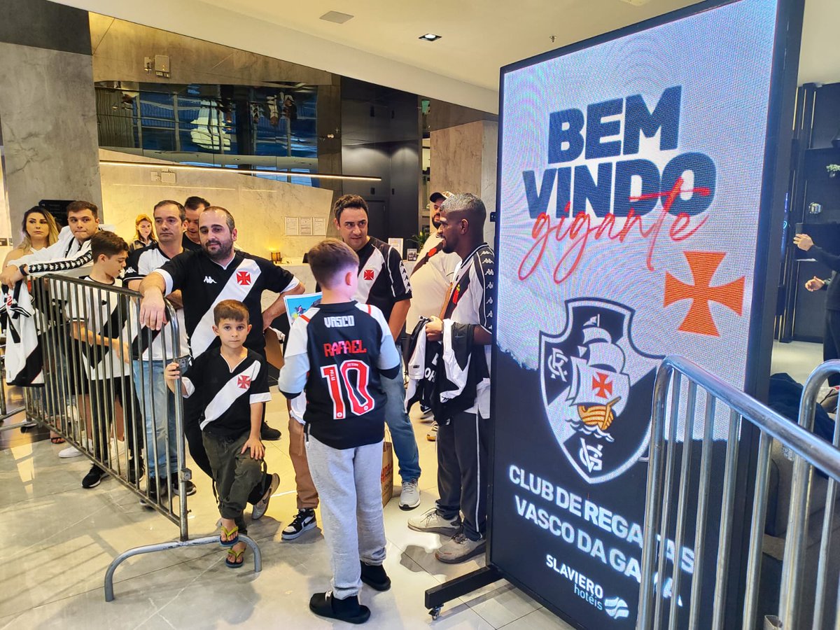 Torcida vascaína já está presente no hotel onde a delegação vascaína ficará concentrada para o jogo de amanhã, contra o Grêmio.