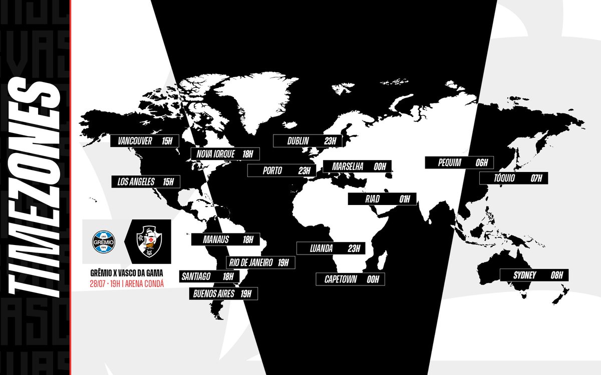 Esses são os horários do pontapé inicial de #GRExVAS em diferentes fusos.