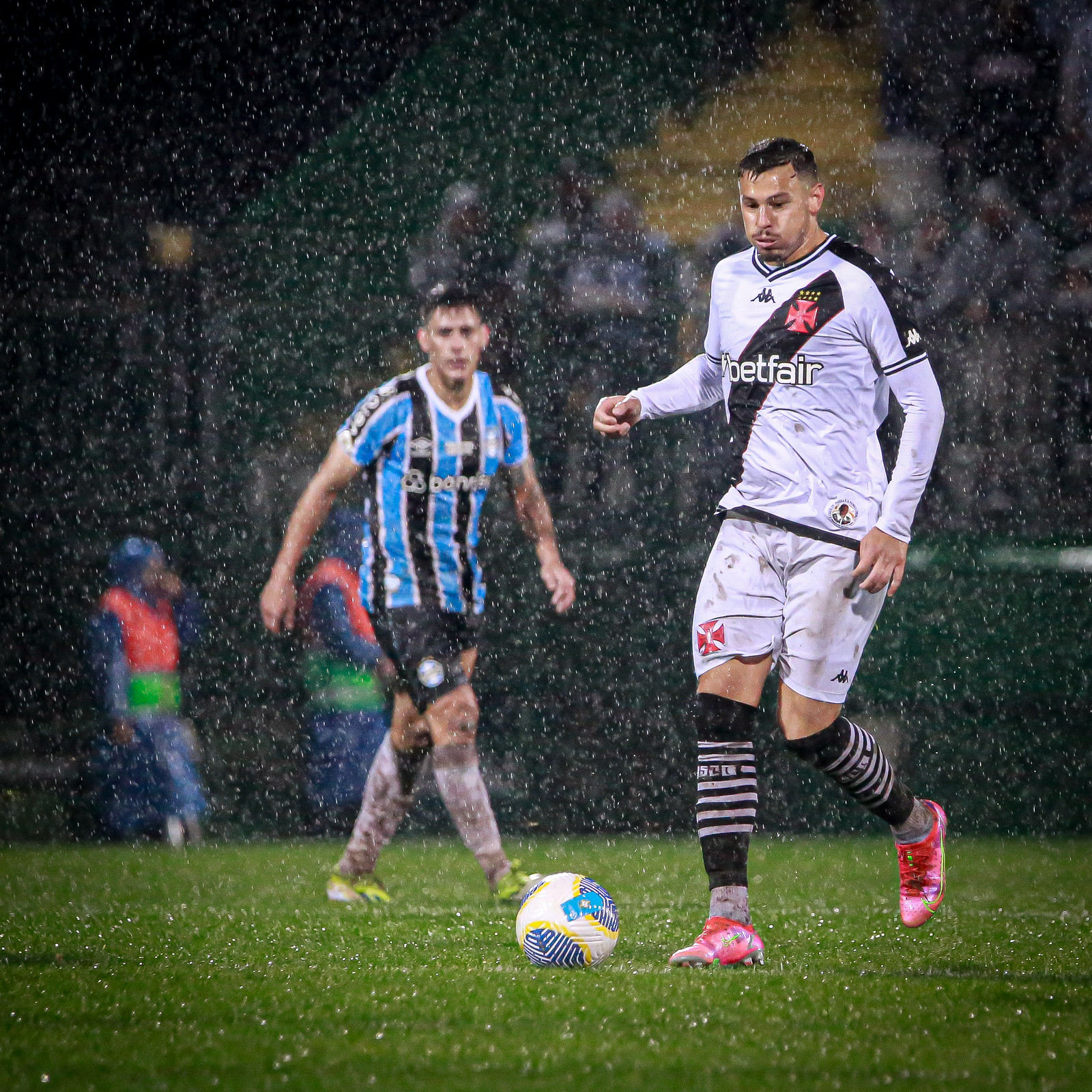 O cenário do jogo mudou e o Vasco que teve mais a bola em uma tentativa de reação. Ainda sofrendo com o gramado, o Cruzmaltino esteve mais na base do abafa do que bom futebol. Aos 30, após bate rebate, Hugo Moura cruzou, Vegetti conseguiu desviar de cabeça, mas mandou ao lado do gol. Já o Grêmio apostou no contra-ataque para tentar matar o confronto.