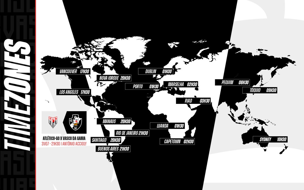 Vasco informa horário do jogo contra o Atlético-GO em várias partes do mundo