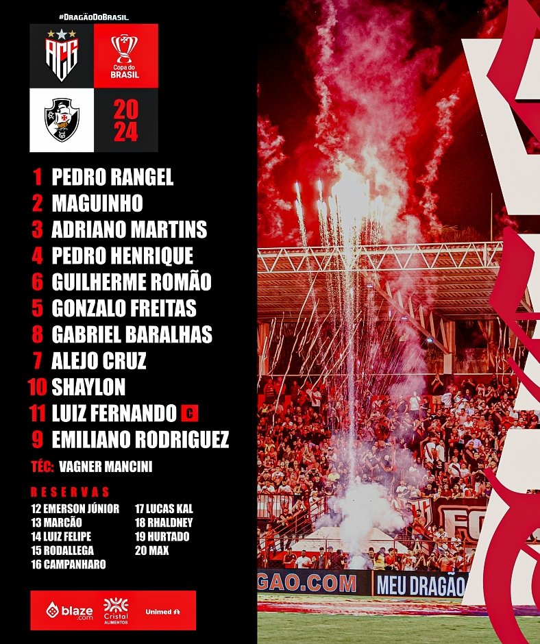 Veja a escalação do Atlético-GO para o jogo contra o Vasco; ex-vascaíno Lucas Kal é opção no banco