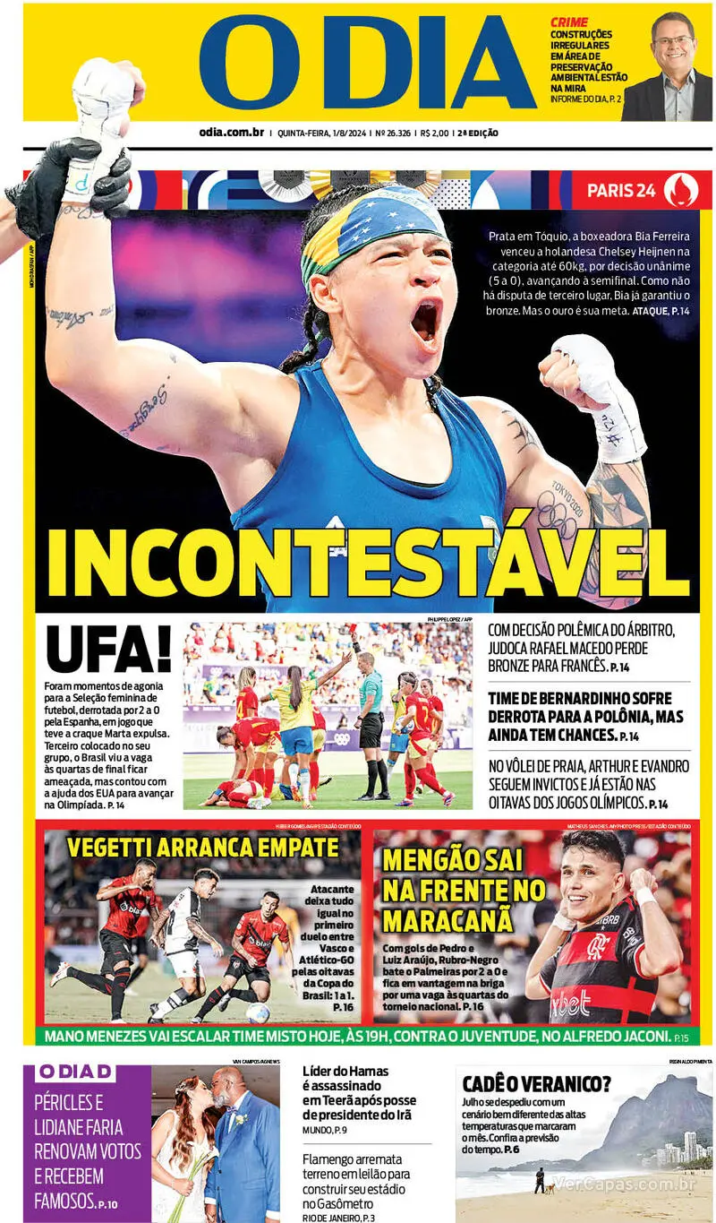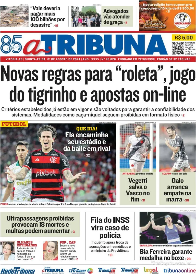 Pelo jogo de ida das oitavas da Copa do Brasil, o Vasco empatou com o Atlético-GO por 1 a 1 no Antônio Accioly, em Goiânia. Veja as capas dos jornais.
