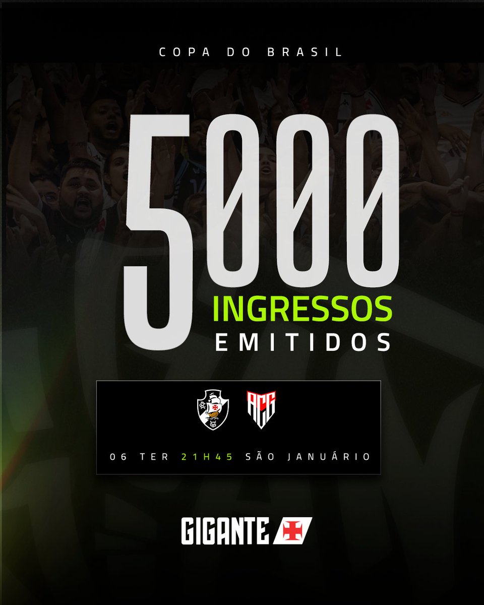 Já foram emitidos 5 mil ingressos para Vasco x Atlético-GO