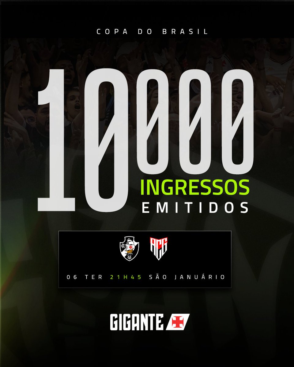 Já foram emitidos 10 mil ingressos para Vasco x Atlético-GO