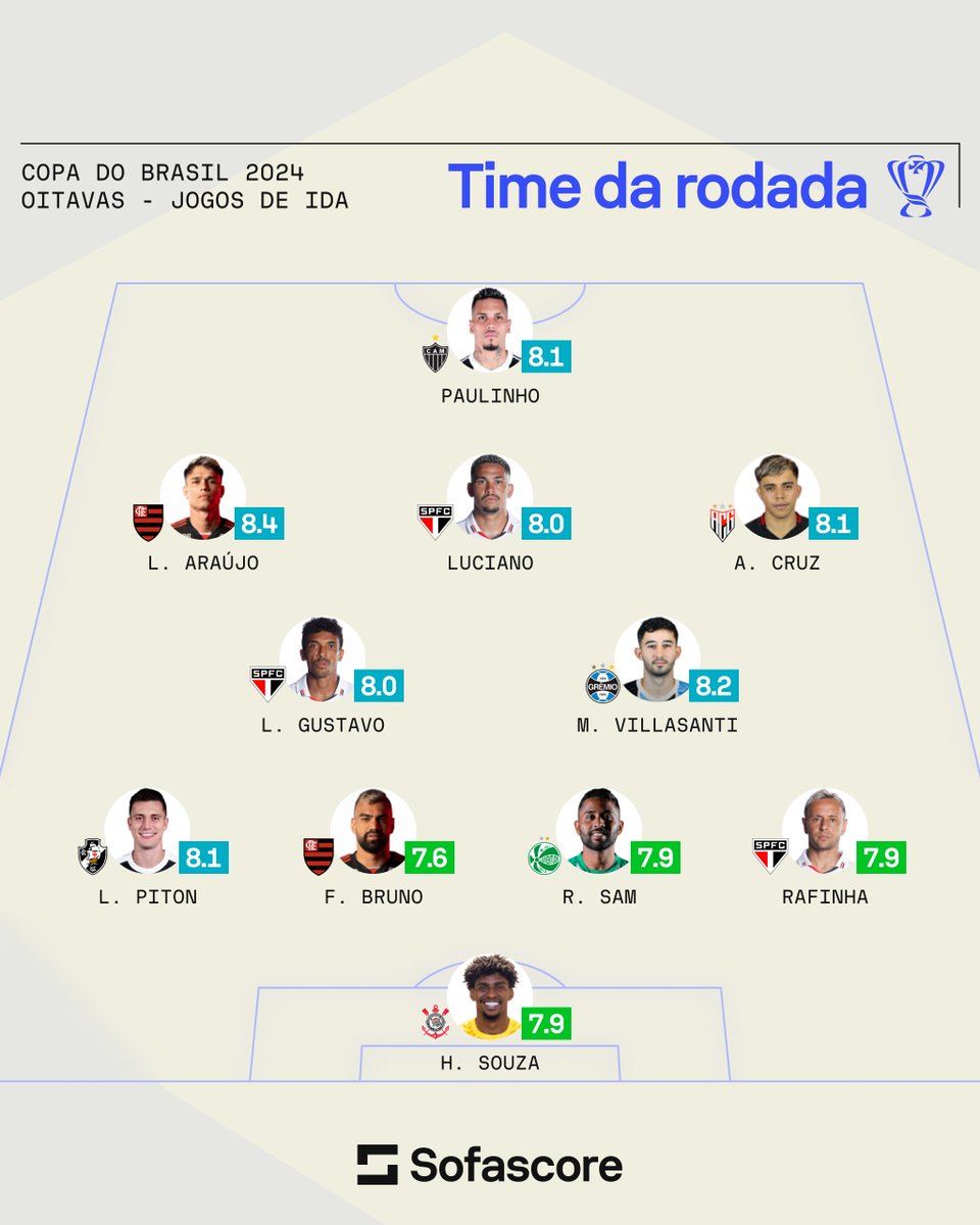 Seleção Sofascore dos jogos de ida das Oitavas da @CopaDoBrasilCBF 2024! O que acharam? 🤔🤔