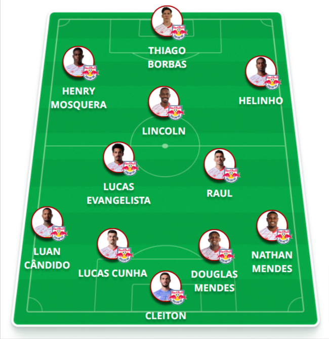 Provável escalação do Bragantino: Cleiton; Nathan Mendes, Douglas Mendes, Lucas Cunha e Luan Cândido; Raul, Lucas Evangelista e Lincoln; Helinho, Mosquera e Thiago Borbas.