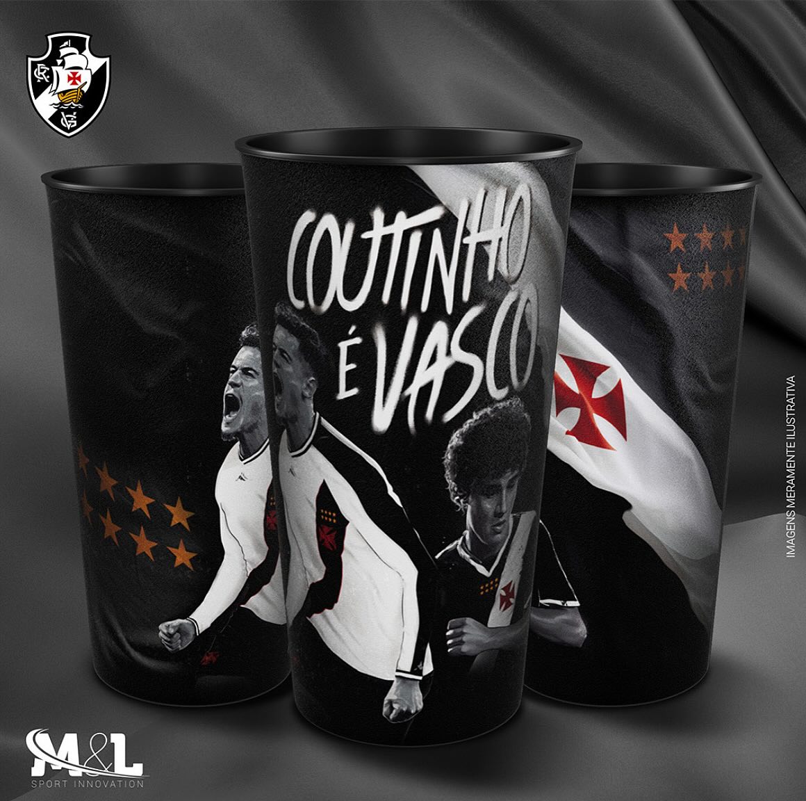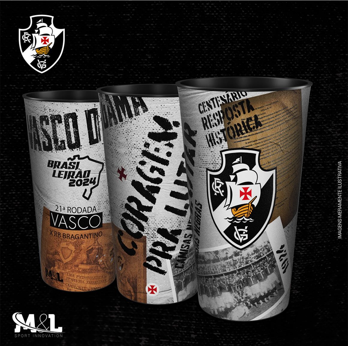 Copos que estarão à venda em São Januário neste sábado homenageiam Resposta Histórica e volta de Coutinho