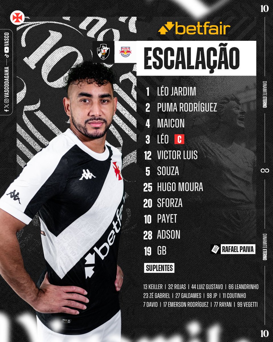 🖼️ Confira a disposição dos titulares e suplentes Vascaínos para o jogo contra o RB Bragantino. 💢