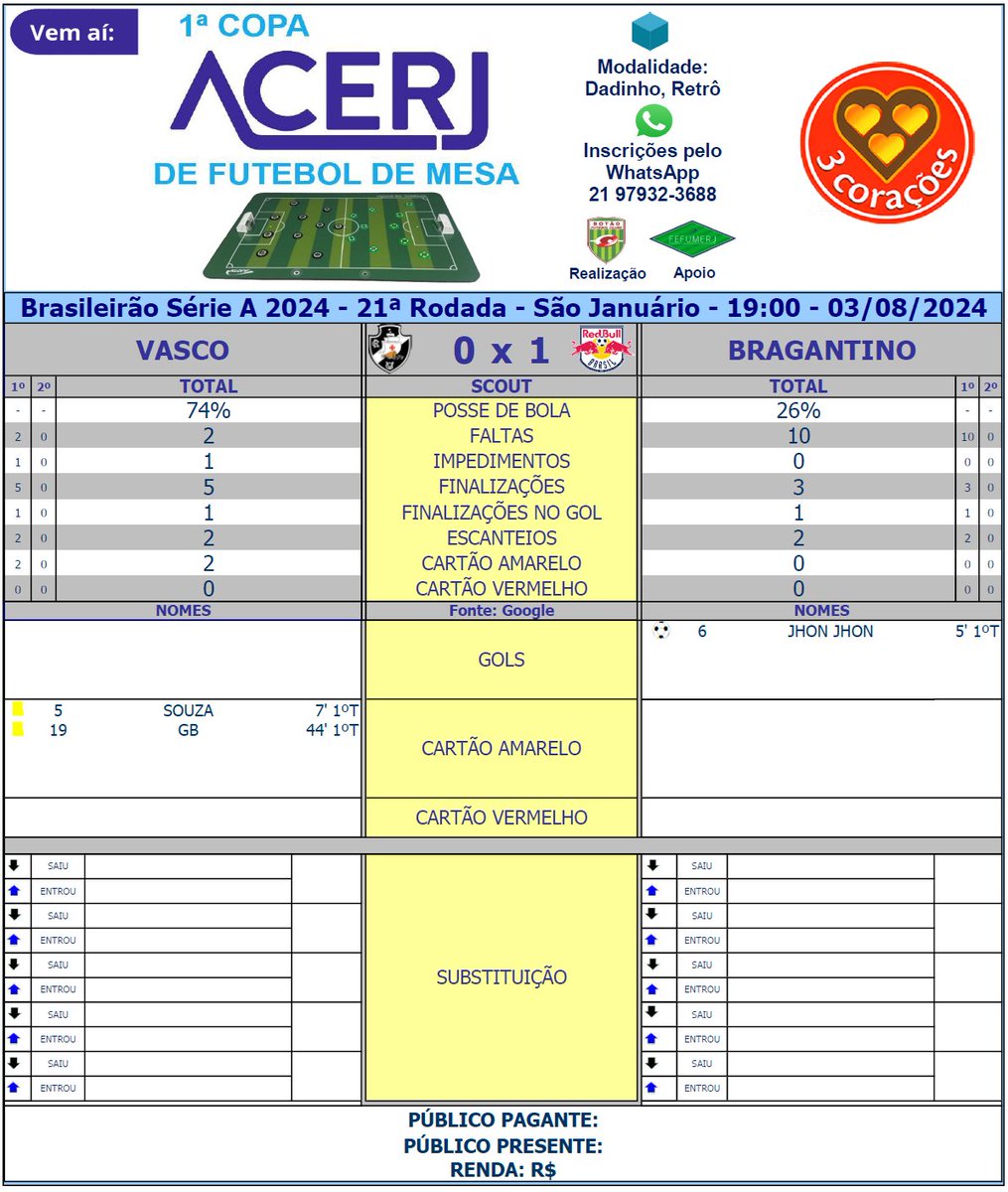 Scout do 1º Tempo de Vasco e Bragantino pela 21ª Rodada do Campeonato Brasileiro 2024 em São Januário (Fonte: Google) #Acerjinforma #brasileirao2024 #VASxRBB #Vasco #Bragantino @Brasileirao @VascodaGama @RedBullBraga