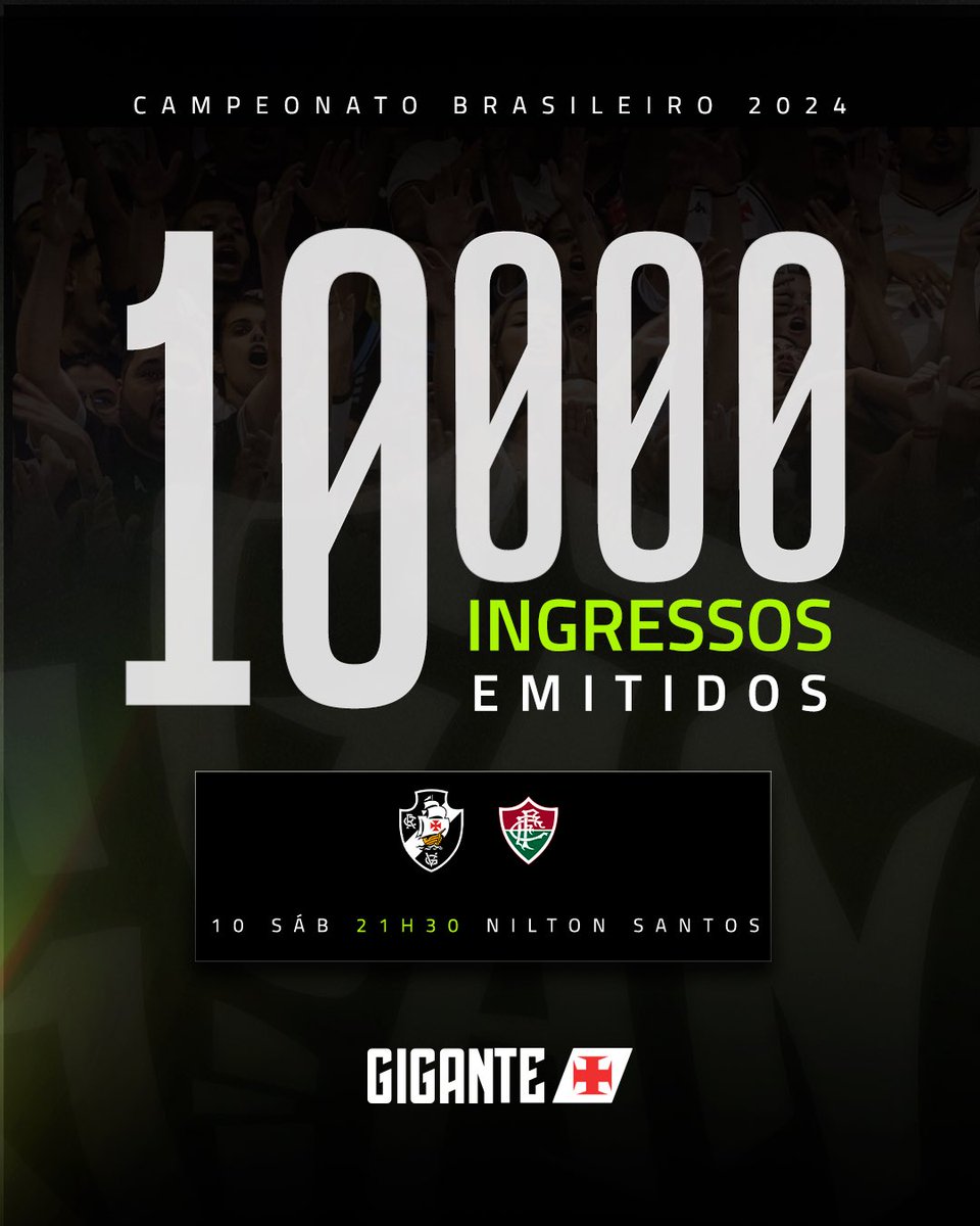 Já foram emitidos 10 mil ingressos para Vasco x Fluminense