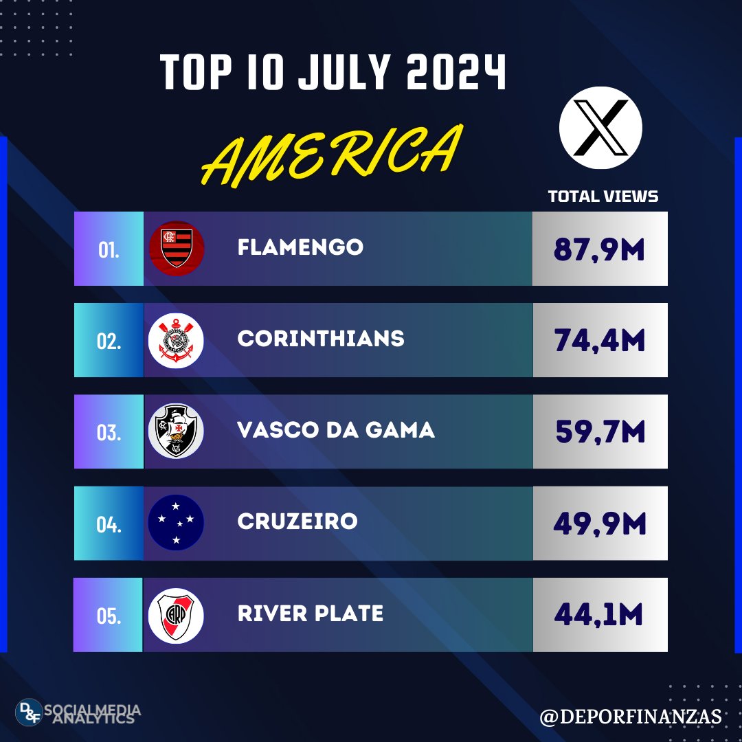 Vasco foi o 3º clube das Américas com mais visualizações no X em julho