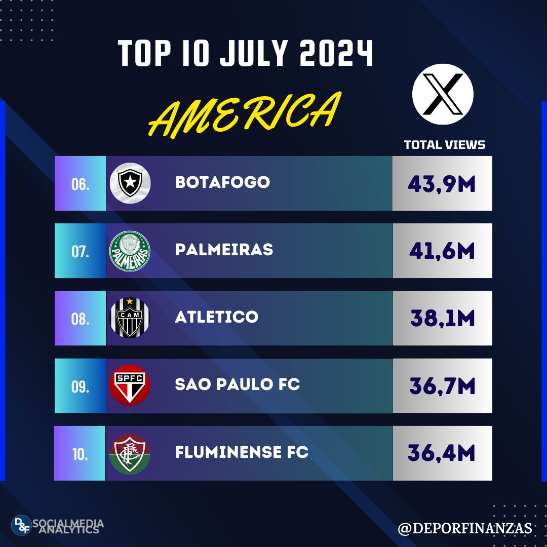 📲⚽ TOP 10 most popular american football clubs ranked by total views on @X during july 2024! (only july posts)