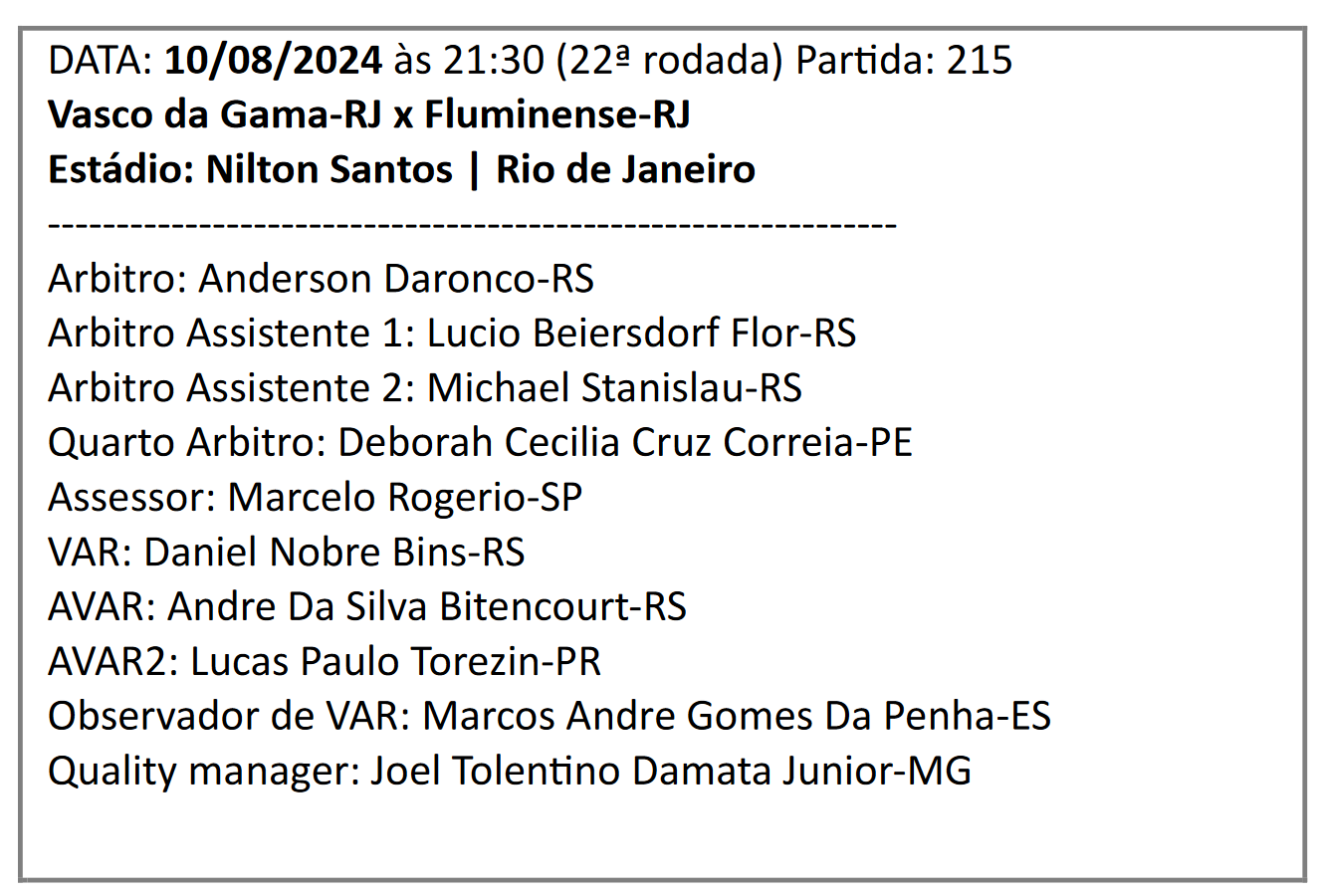 Anderson Daronco(RS) será o árbitro da partida entre Vasco x Fluminense.