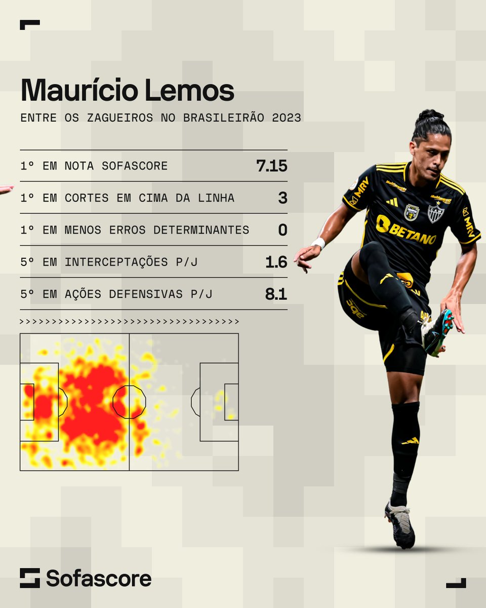 Mauricio Lemos foi o zagueiro com a maior Nota Sofascore no Brasileirão 2023! 👏👏
