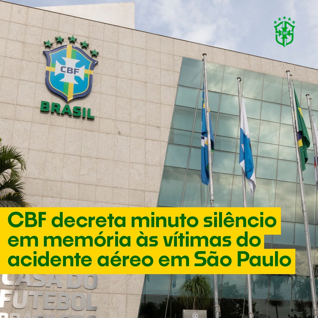 A CBF se solidariza com familiares e amigos das vítimas do acidente aéreo ocorrido na tarde desta sexta-feira (9) em Vinhedo, São Paulo. A entidade decretou minuto de silêncio antes do início de todos os jogos das quatro divisões do futebol nacional a partir da noite desta sexta-feira.