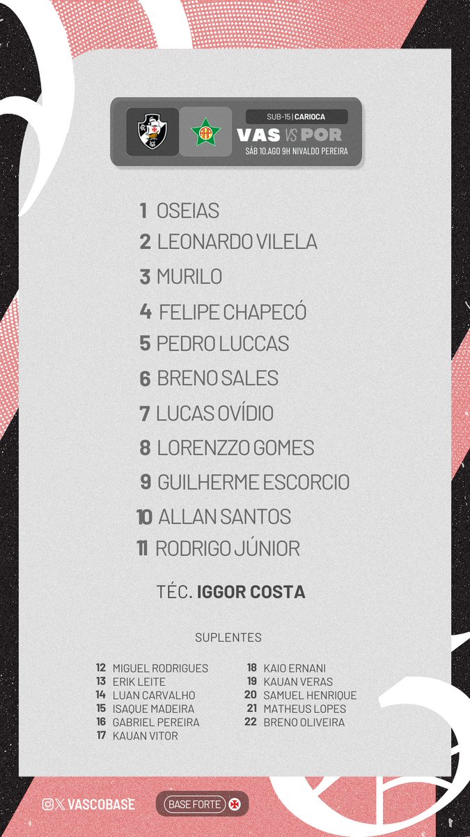 09/08/24 - Vasco recebe a Portuguesa no Sub-15 e no Sub-17 neste sábado pelo Carioca a partir das 9h; Sub-20 visita o Fluminense no domingo às 10h