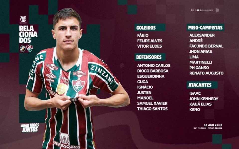 🚨Thiago Silva está fora do clássico contra o Vasco. Nonato é Serna também. Bernal relacionado pela primeira vez.