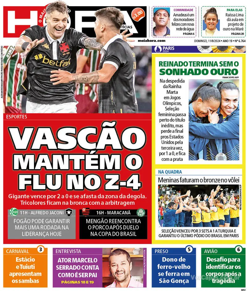 Veja as capas dos jornais após Vasco 2 x 0 Fluminense