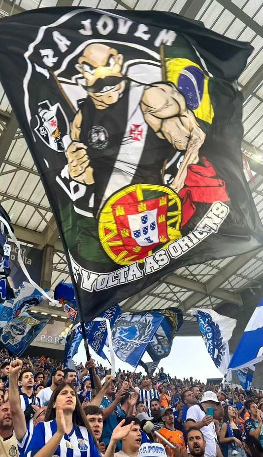 como de costume, bandeira da torcida do Vasco em jogo do Porto no estádio do Dragão.