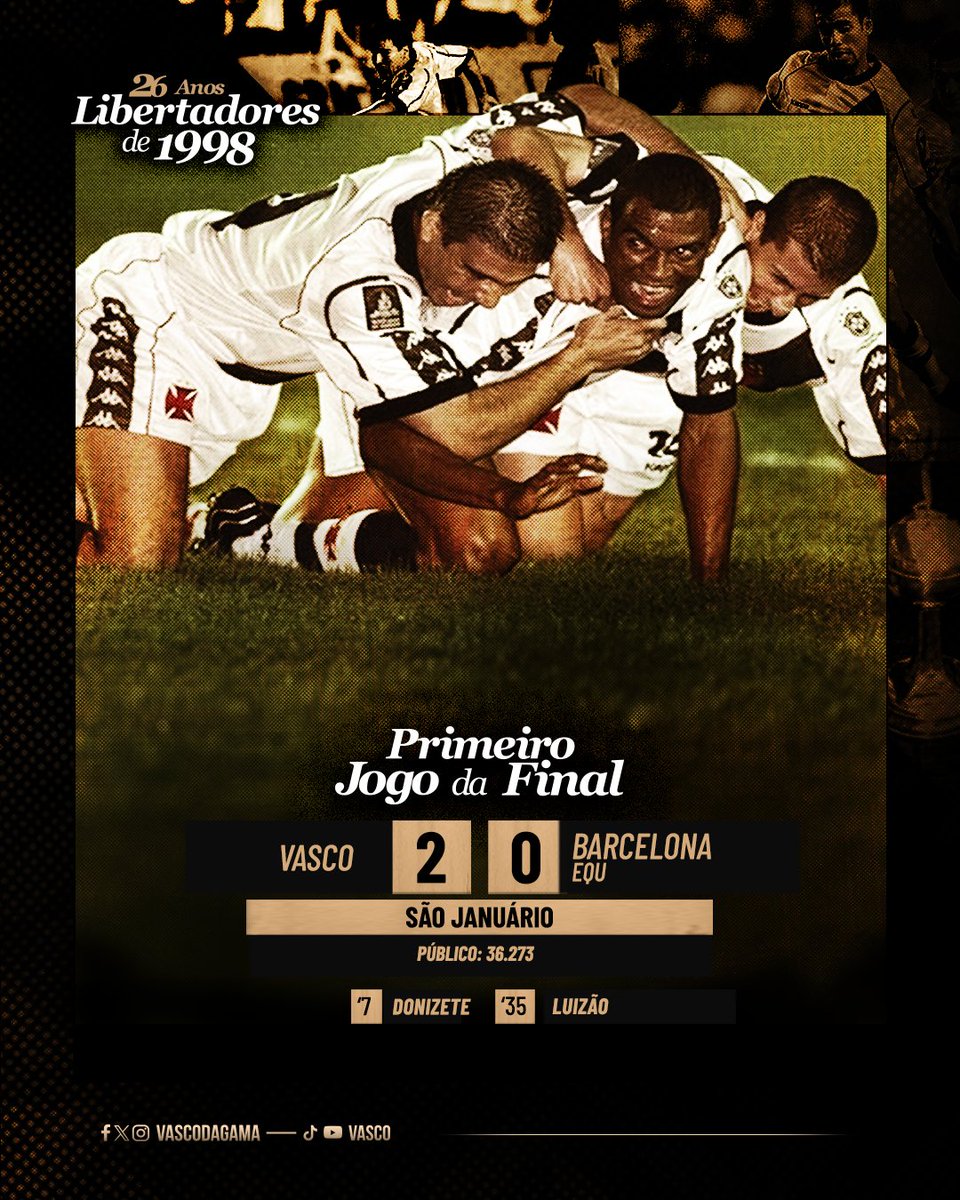 Há 26 anos, São Januário recebia o primeiro jogo da final da Copa Libertadores de 1998! 🏆